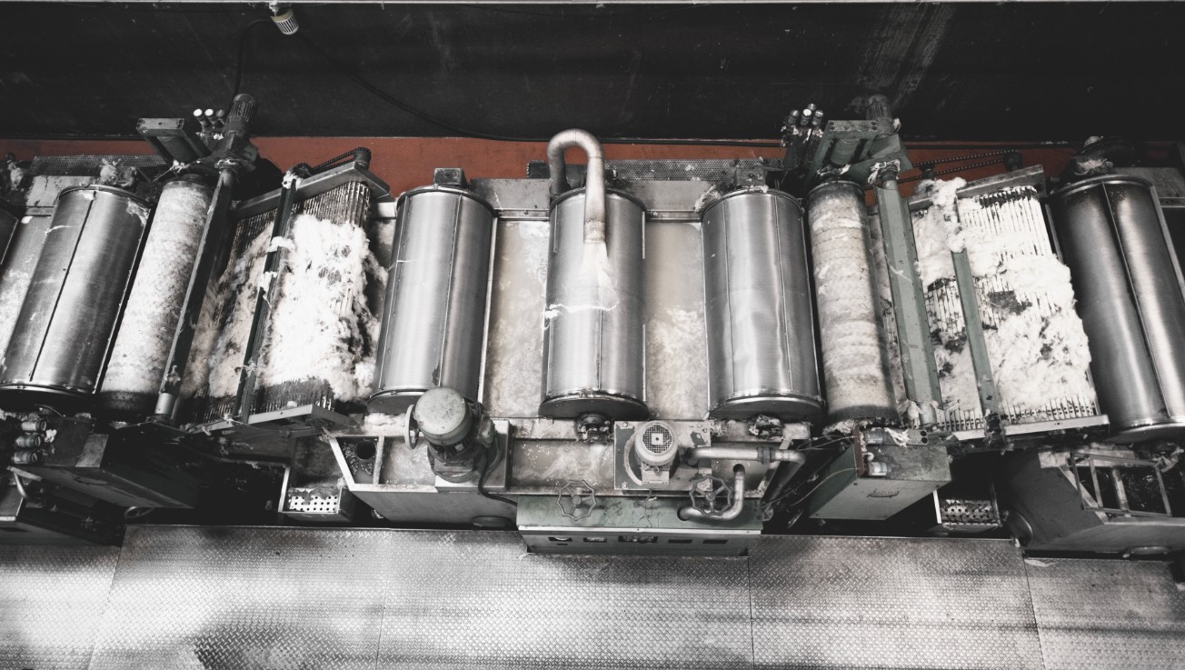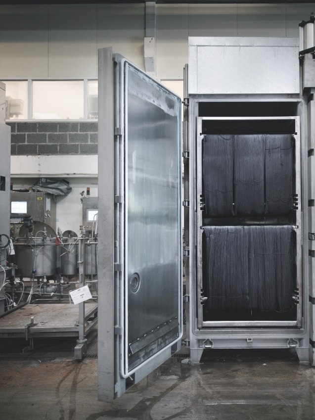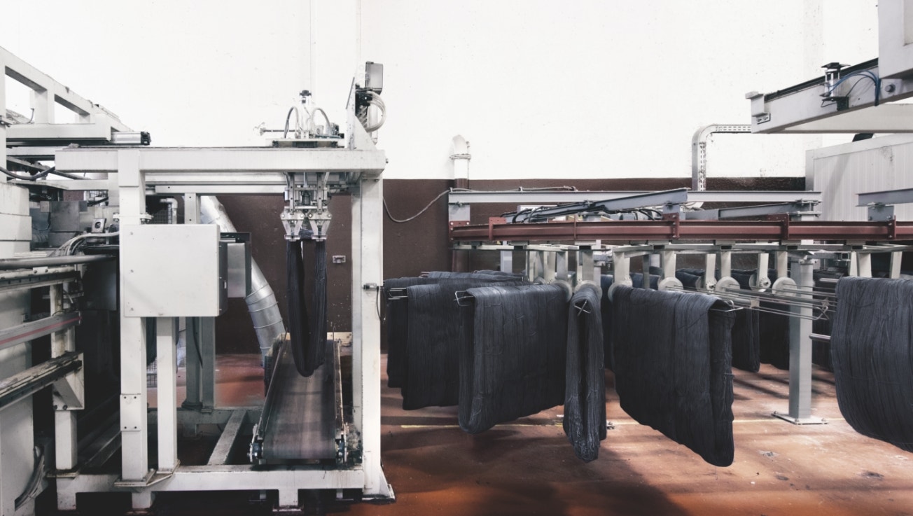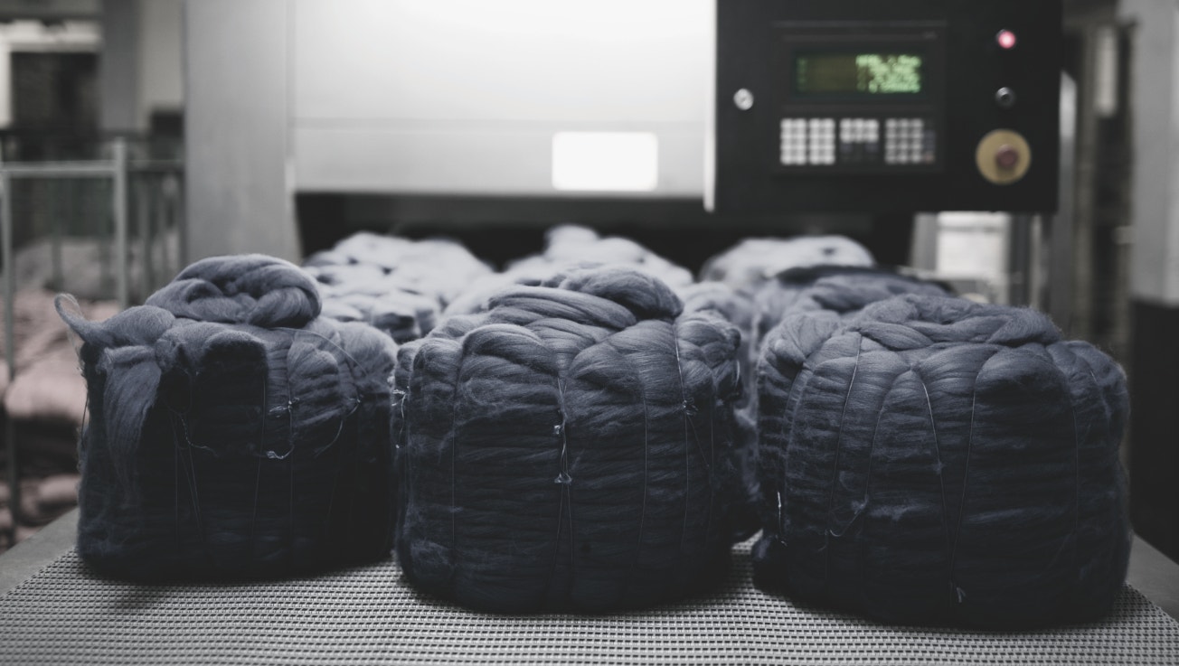 Eftir litun er garnið undið. Fyrst er mesti vökvinn kreistur úr ullinni með keflum. Því næst eru ullinni komið fyrir af vélmennum í þurrkofna.