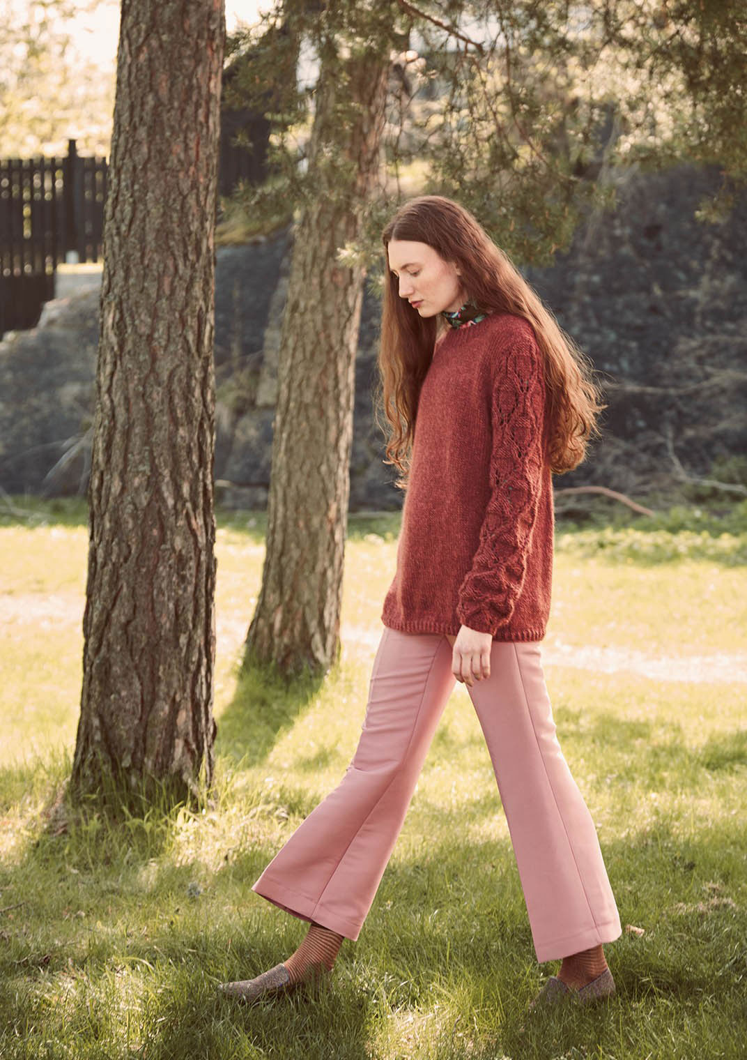 Síð peysa með gataprjóni